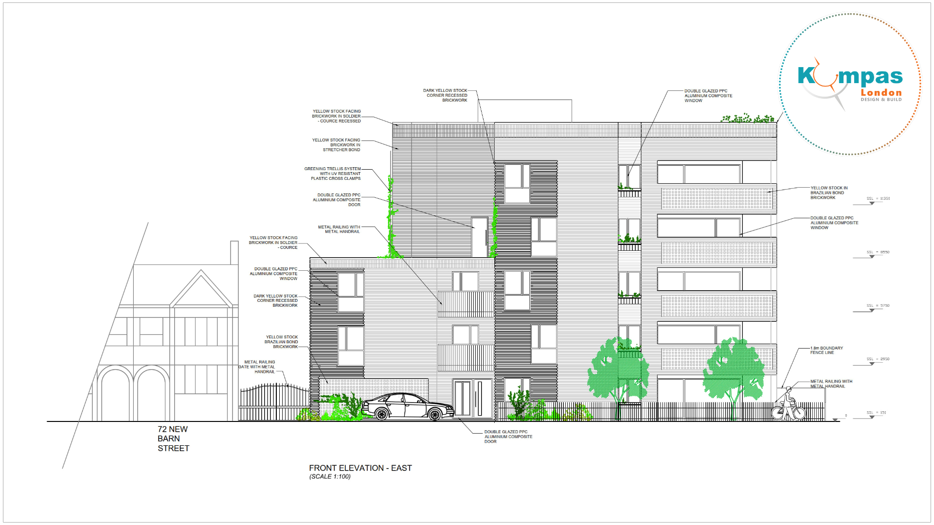 Redevelopment of vehicle breaker and sales yard to provide 21 residential units, split into two separate blocks: Block A (5-storey / 17 flats) and B (3-storey / 4 houses) at 66-68 New Barn Street Plaistow London E13 8JW