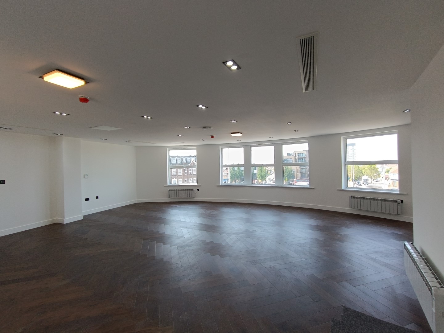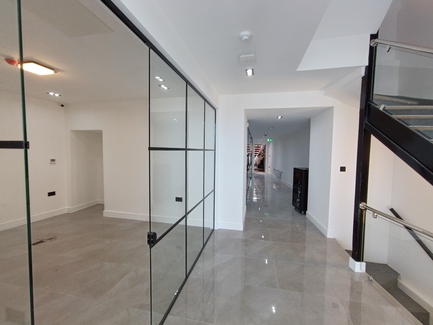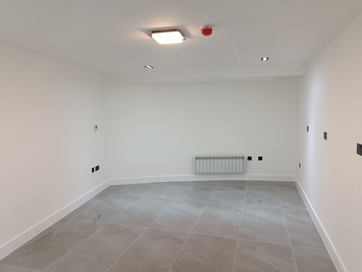 The second and third floors saw an identical approach to the first floor, with the installation of a lowered ceiling, new plasterboards, and floor tiles. New radiators and doors were installed along with a new washroom.