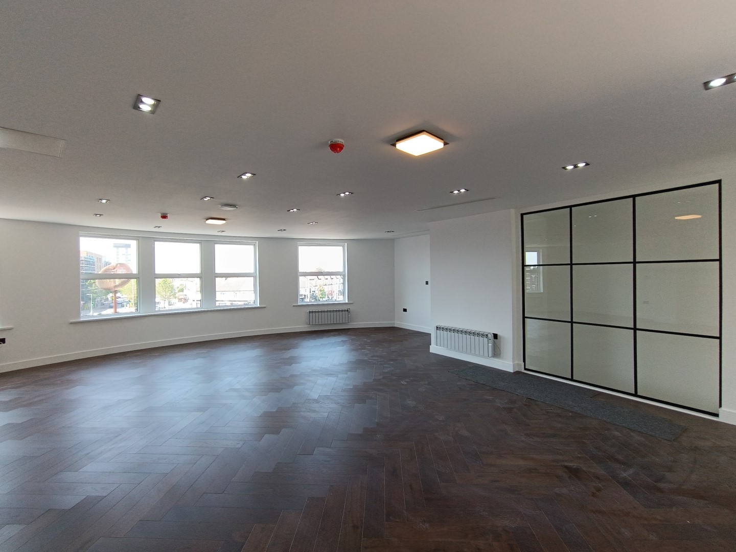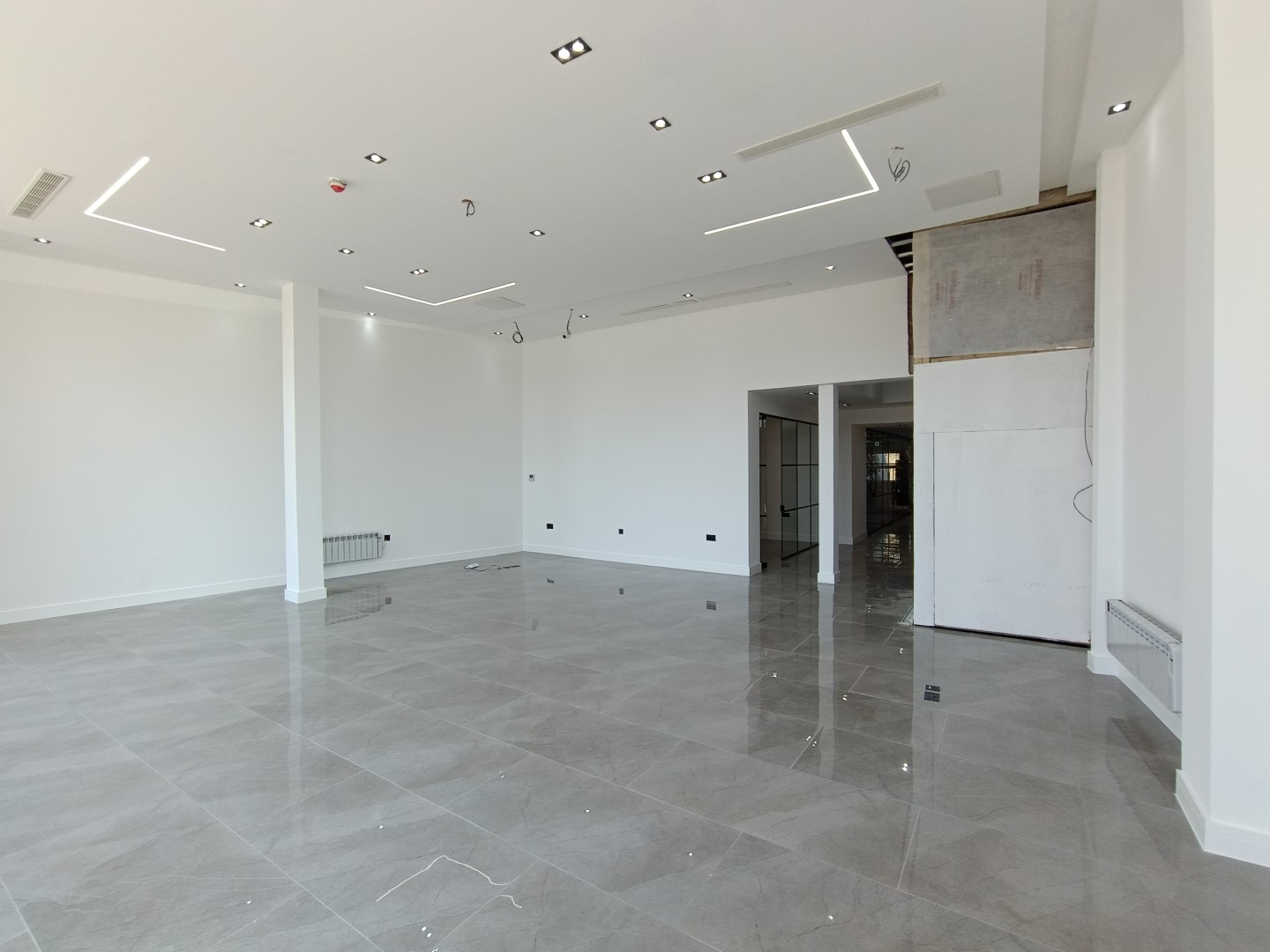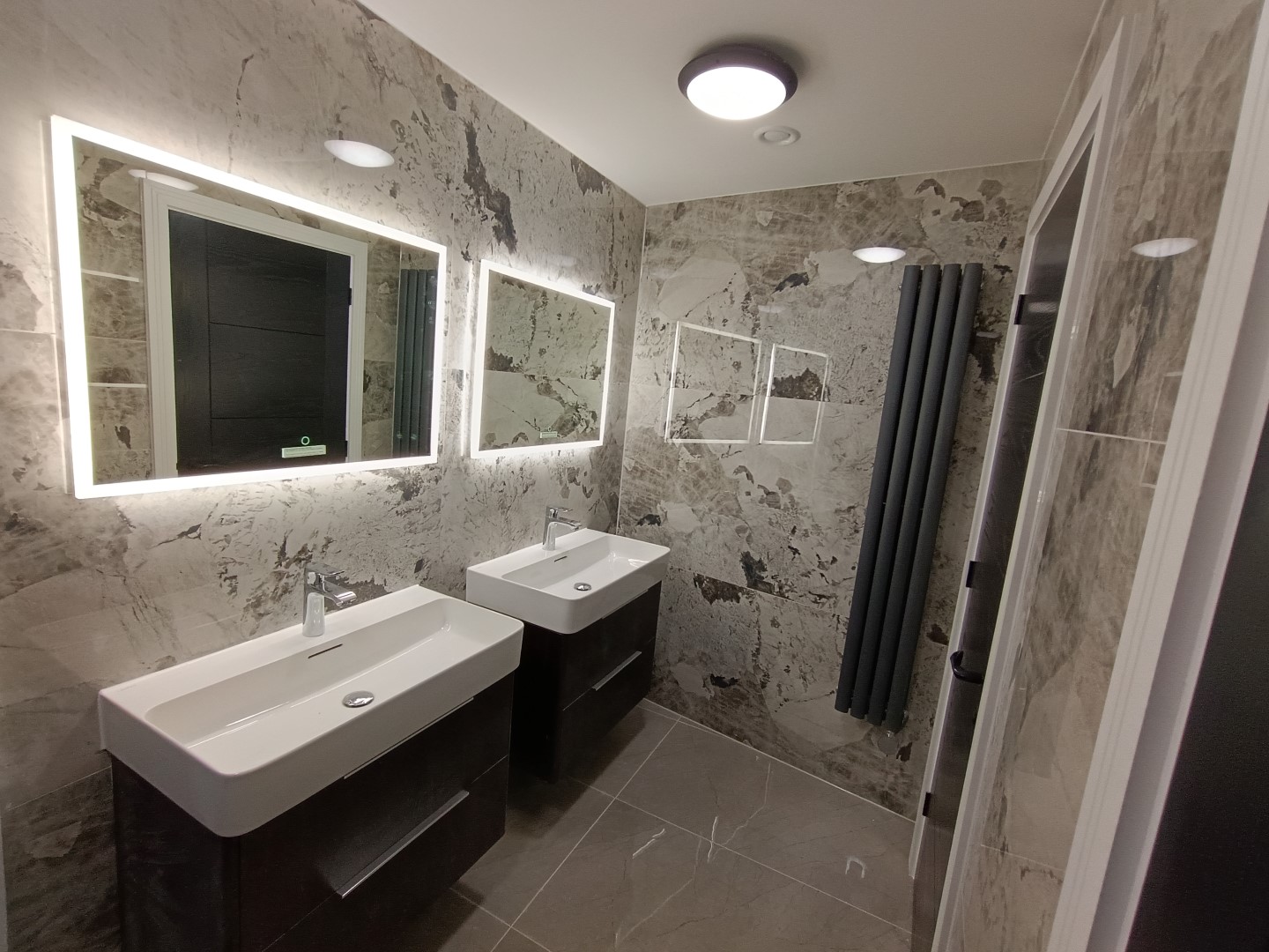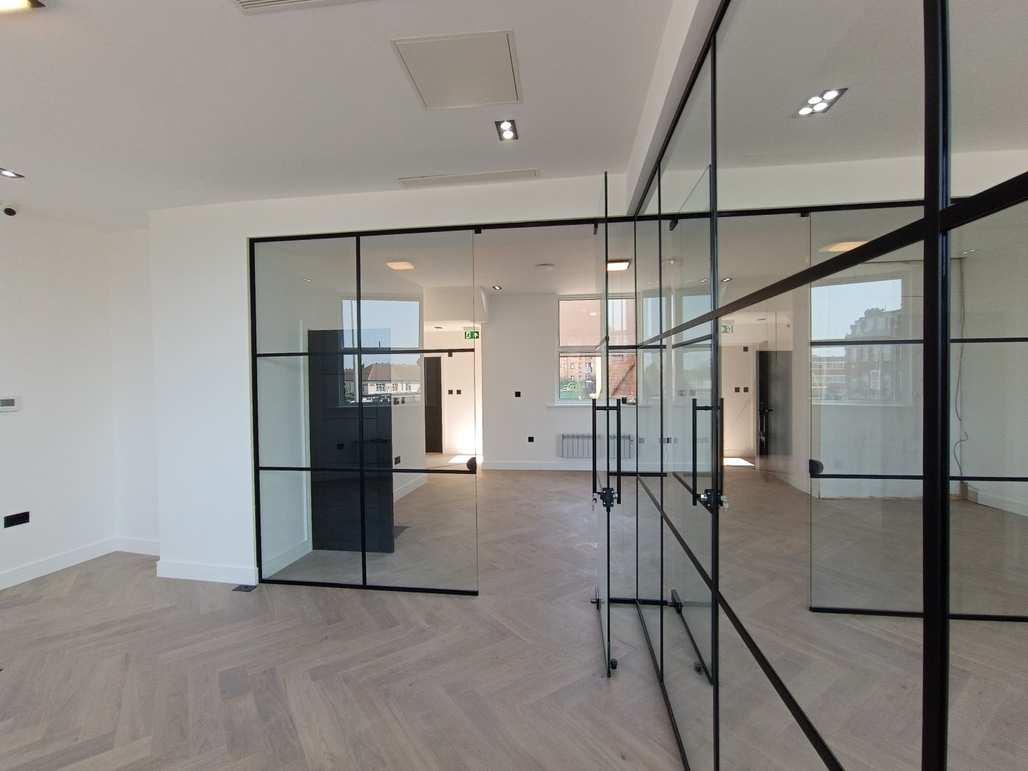 The second and third floors saw an identical approach to the first floor, with the installation of a lowered ceiling, new plasterboards, and floor tiles. New radiators and doors were installed along with a new washroom.